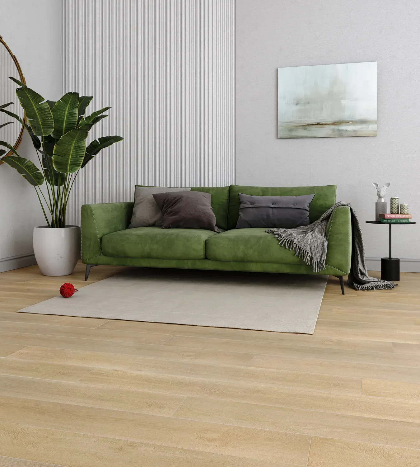 Поверхность SPC покрытия защищена многоуровневой системой: UV-слой предотвращает выгорание и изменение оттенка, а полиуретановый защитный слой 0,60 мм с технологией Antiscratch повышает стойкость к царапинам и бытовым нагрузкам. Пол легко ухаживается, подходит для тёплых полов до +27 °C, имеет класс нагрузки 34/43 и официальную гарантию 20 лет.