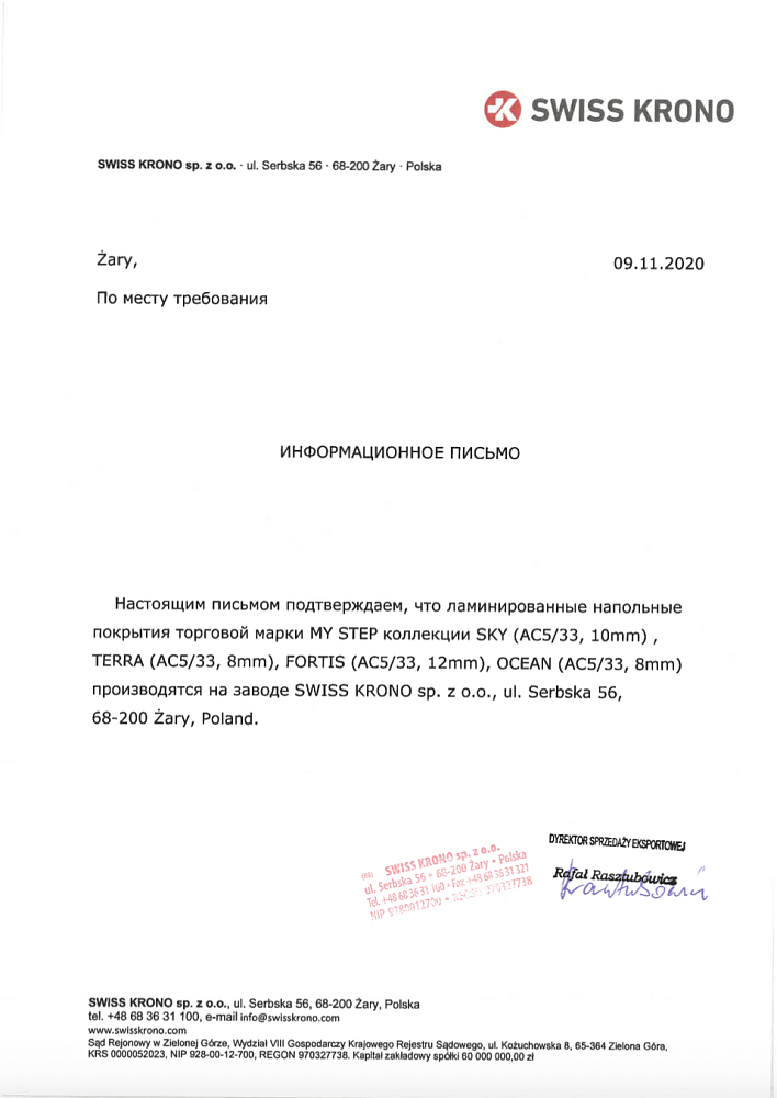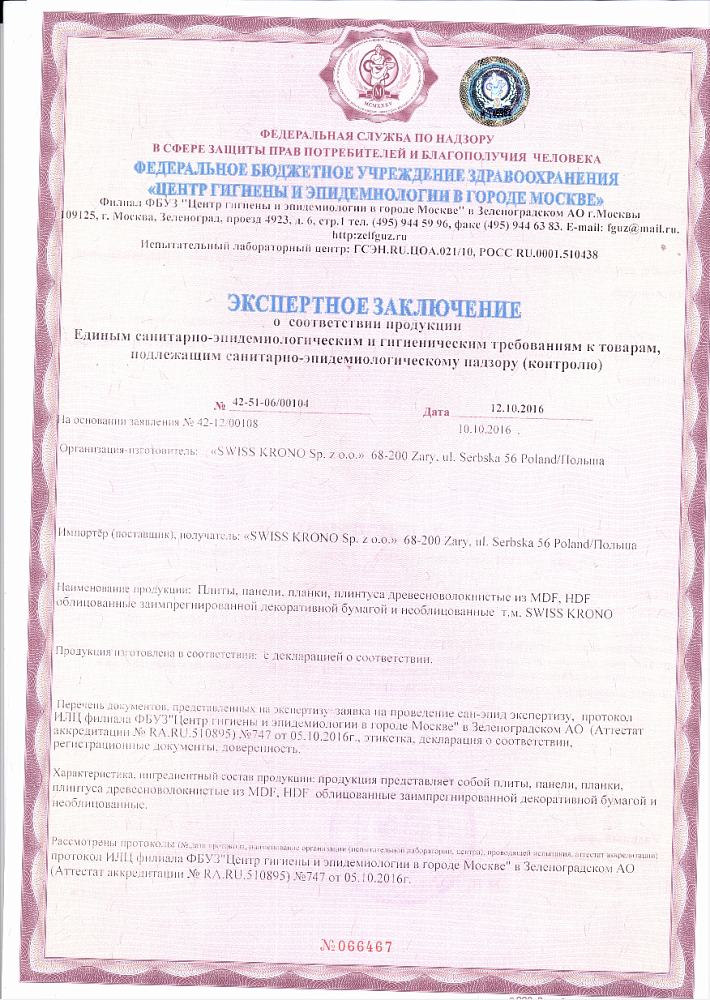 Дата получения: 05.11.2024 Подтверждает, что стеновые панели MY STEP соответствуют санитарно-гигиеническим требованиям, безопасны для использования в жилых помещениях и не оказывают вредного воздействия на человека.